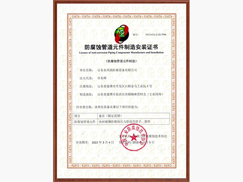山東東興揚(yáng)(淄博五環(huán))防腐設(shè)備有限公司是專(zhuān)業(yè)的鋼襯玻璃廠家,鋼襯玻璃,鋼襯玻璃管道等產(chǎn)品使用壽命長(zhǎng),造價(jià)低,集開(kāi)發(fā)、設(shè)計(jì)、生產(chǎn)、經(jīng)營(yíng)于一體的專(zhuān)業(yè)性的工業(yè)防腐單位,被評(píng)選為中國(guó) 工業(yè)防腐蝕技術(shù)協(xié)會(huì)會(huì)員企業(yè)單位。